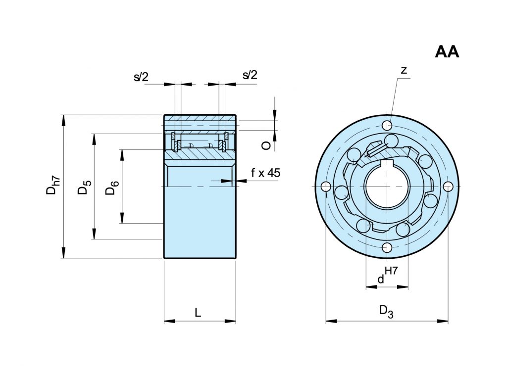 | dH7 | Dh7 | D5 | D6 | D3 | Z | O | L | f | s | Weight (kg) | Drag torque (Ncm) |